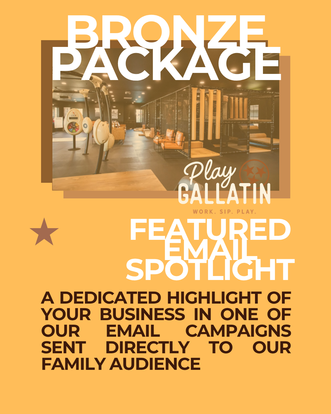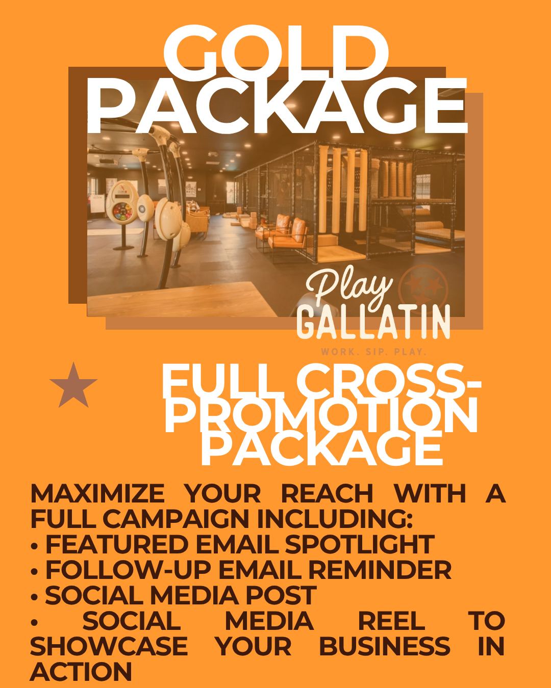 Our best value package is the ultimate way to maximize your visibility:featured email spotlight, follow-up email, social media post, social media reel to showcase your business in action.